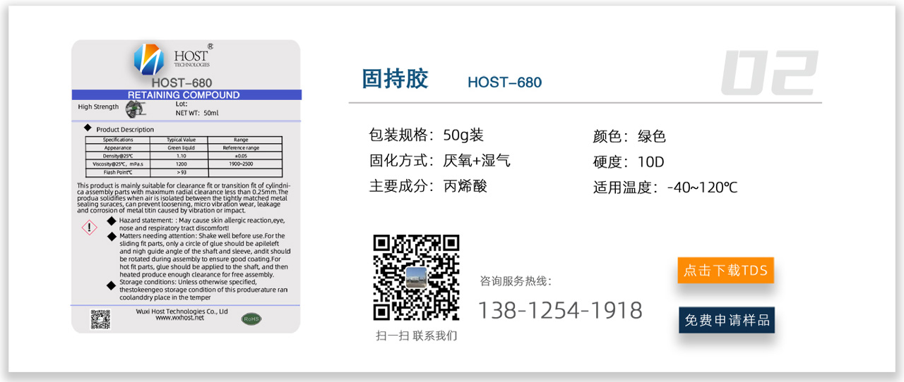 固持胶在组装压配合和滑动配合零件的精密装配中至关重要,能够提高圆柱型无螺纹装配作业的剪切强度,固持胶能够填充各个部件之间的内部空间,无需空气即可固化形成牢固粘接,且允许传递高负载,能使之均匀的分散,消除应力集中以及装配界面的腐蚀。固持胶被广泛应用于各种机械组件以及轴承、轴和缸套,在汽车和重型机械行业中最为常用。
